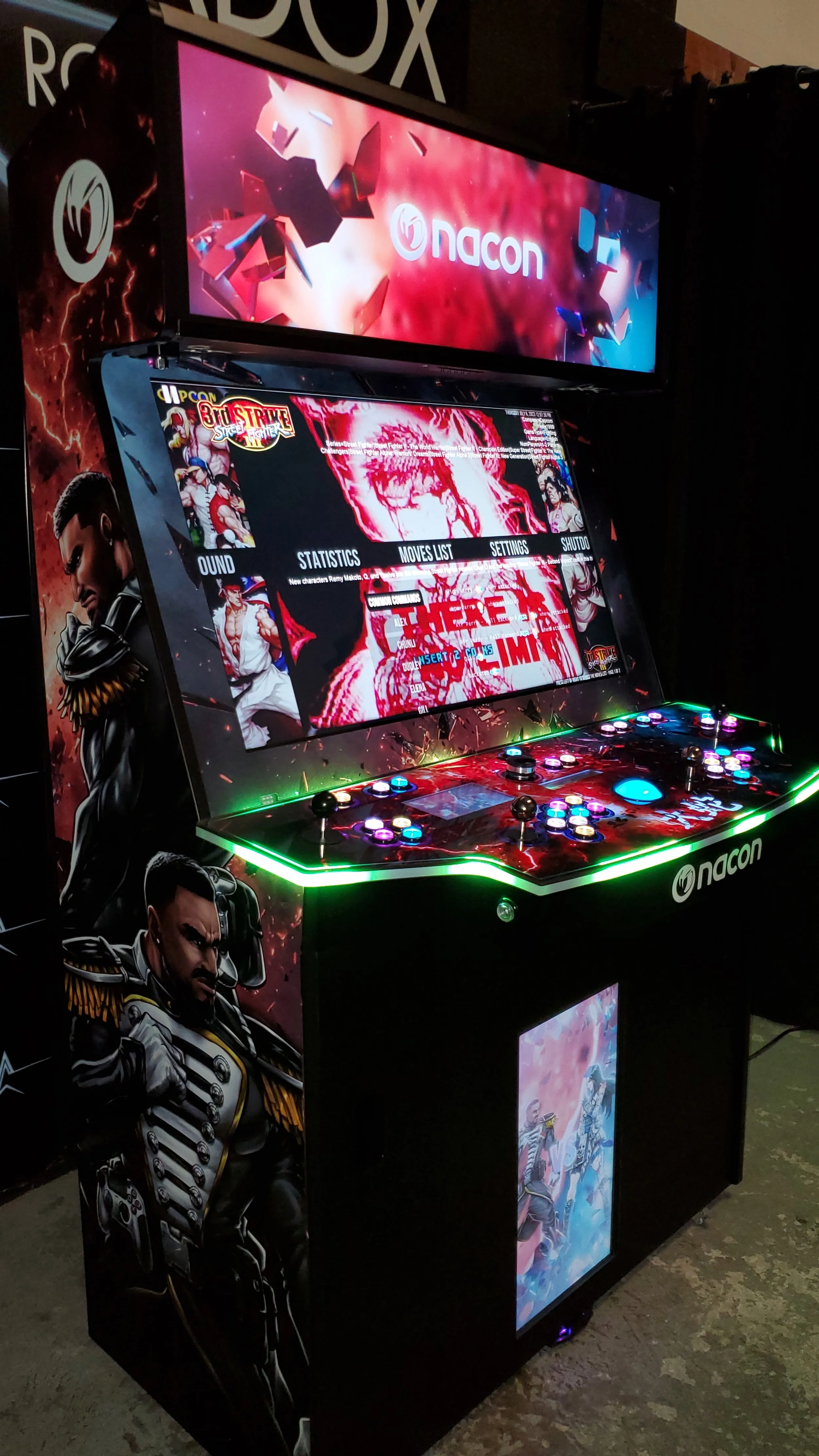 We did a custom machine for NACON, makers of really cool Playstation controllers. We integrated their Daija control stick into our control panel, and the cabinet can switch between Playstation and PC!