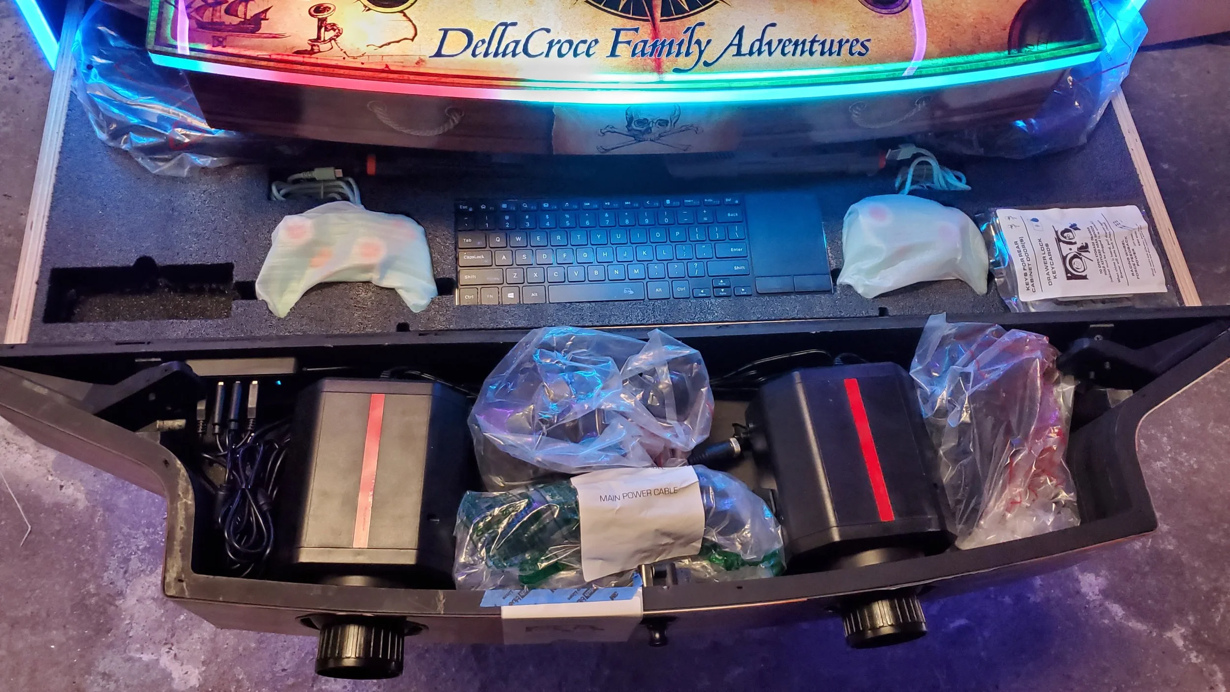 Plug your PDX Arcade into a 120v grounded outlet using the power cord supplied. The switch on the Main Power Inlet turns on the entire cabinet power. There is a computer bootup/shutdown button on the top left rear section of the cabinet to start the system up. If you have the standard 43” monitor you’ll need to use the remote to power up the screen (not required on the Gsync monitors)